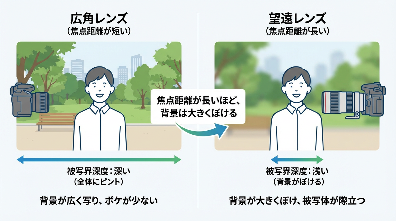 | レンズの種類 | 焦点距離の特徴 | 背景のボケ方 |