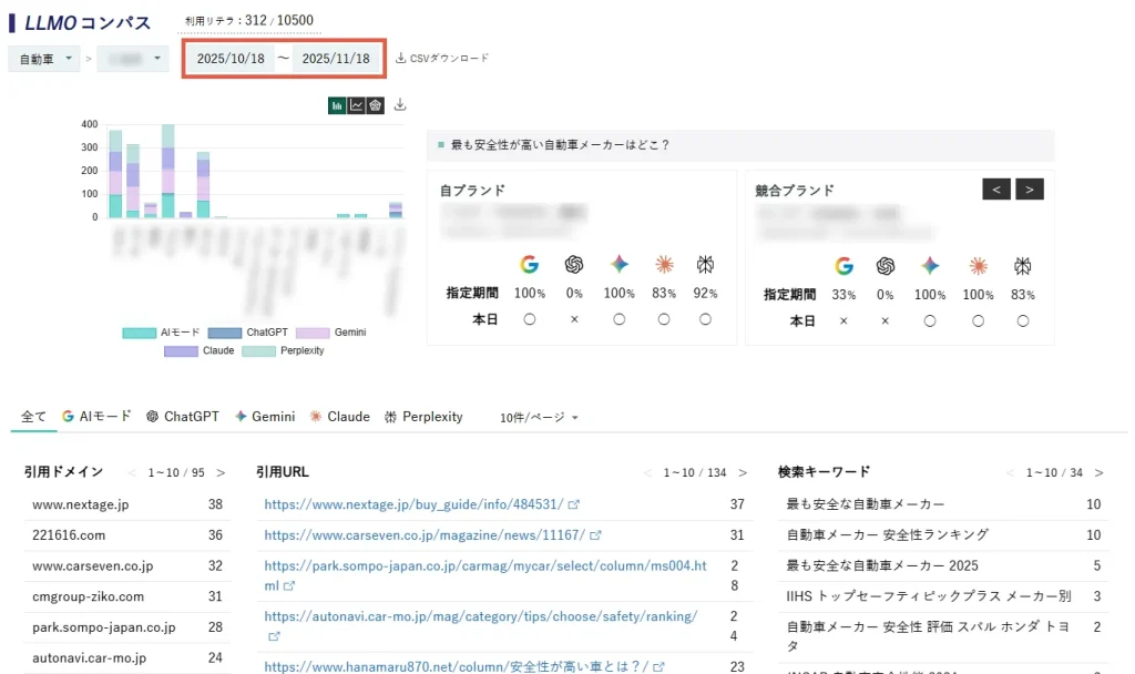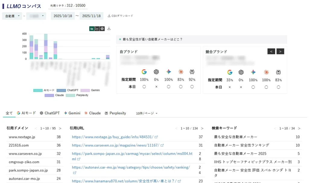 LLMOコンパスで生成AIのブランド言及度、参照URL、検索キーワードなどを計測してAI検索対策を
